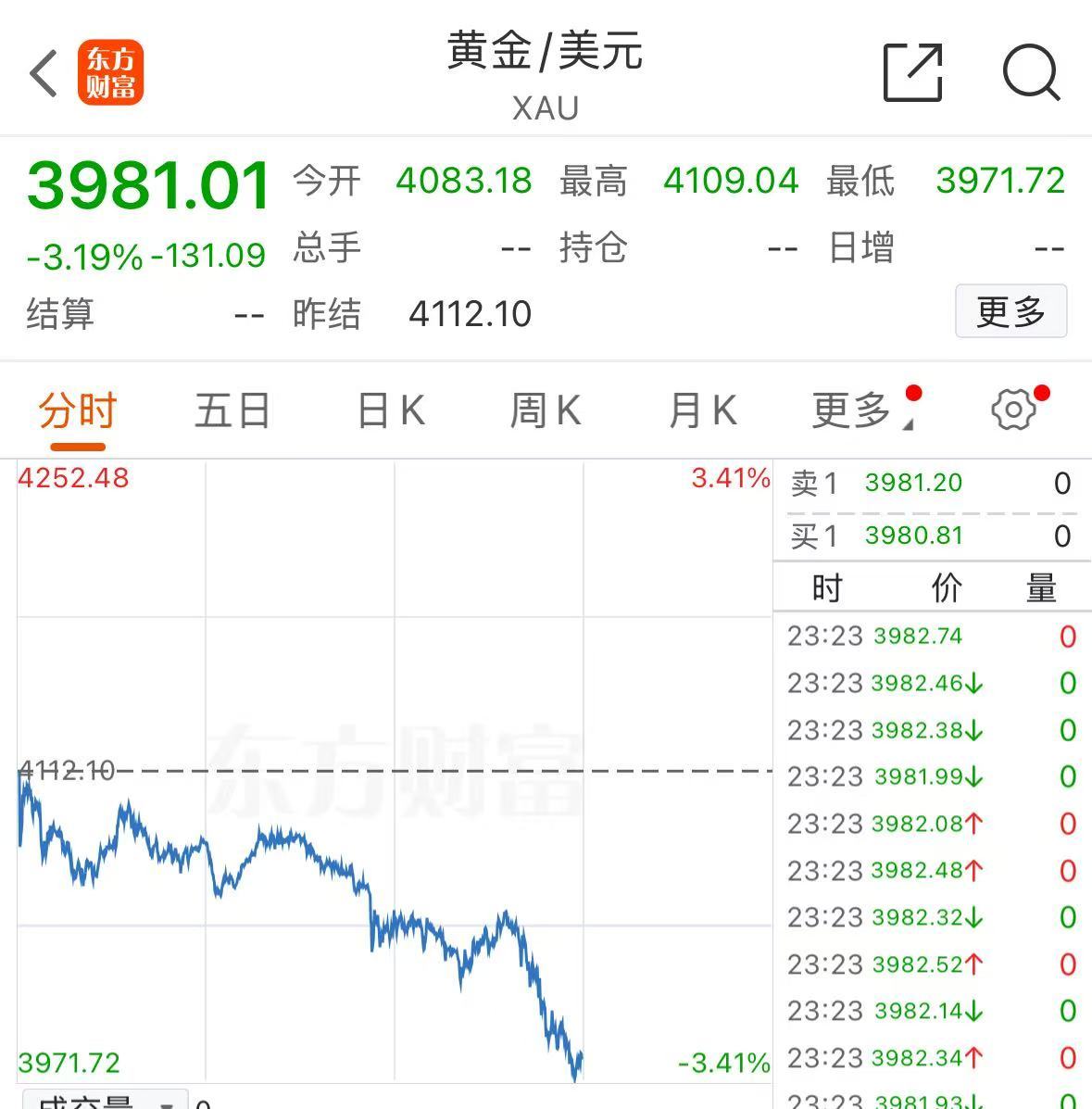 作為避險資產(chǎn)的黃金、白銀價格則大幅跳水,現(xiàn)貨黃金向下跌破4000美元/盎司,為10月10日以來首次,截至北京時間23:20左右,現(xiàn)貨黃金大跌3.19%,報3981.01美元/盎司,現(xiàn)貨白銀大跌4.65%,報46.35美元/盎司。