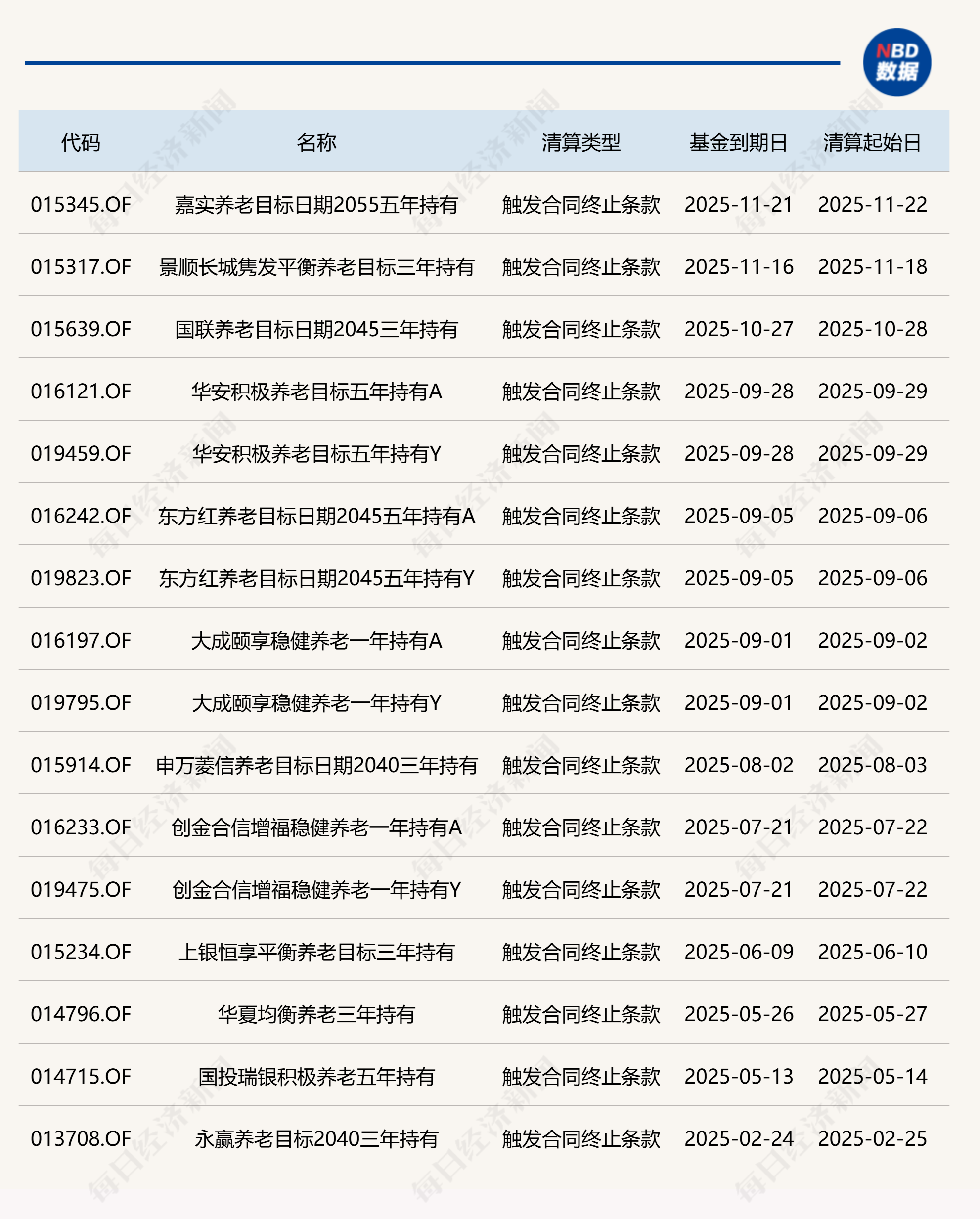 4只養(yǎng)老目標(biāo)基金Y份額清盤