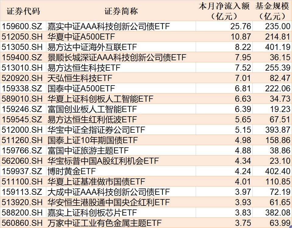 截至12月4日,本月資金凈流入額居前20的ETF名單如下: