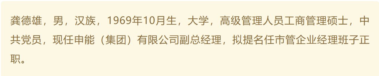 關(guān)于龔德雄的調(diào)動(dòng)去向,近期已有明確信號(hào)。據(jù)上海發(fā)布公眾號(hào)2025年11月14日發(fā)布的上海市市管干部任職前公示顯示,56歲的龔德雄作為申能(集團(tuán))有限公司副總經(jīng)理,擬提名任市管企業(yè)經(jīng)理班子正職。
