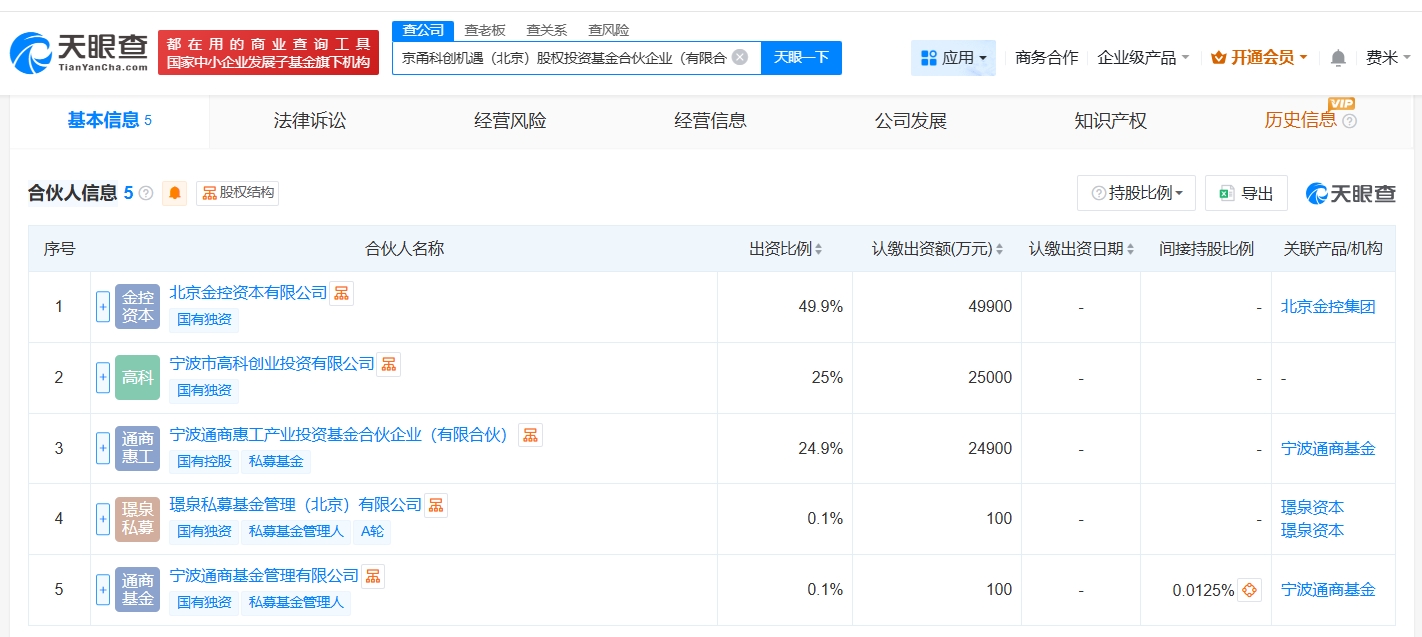 每經(jīng)AI快訊,天眼查App顯示,近日,京甬科創(chuàng)機(jī)遇(北京)股權(quán)投資基金合伙企業(yè)(有限合伙)成立,執(zhí)行事務(wù)合伙人為寧波通商基金管理有限公司、璟泉私募基金管理(北京)有限公司,出資額10億元人民幣,經(jīng)營(yíng)范圍為私募股權(quán)投資基金管理、創(chuàng)業(yè)投資基金管理服務(wù),由北京金控資本有限公司、寧波市高科創(chuàng)業(yè)投資有限公司、寧波通商基金管理有限公司等共同出資。