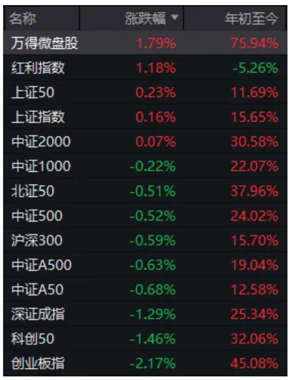 Wind數(shù)據(jù)顯示,昨日“金針探底”的微盤股指數(shù),今天收漲1.79%,錄得本月最大單日漲幅。中證2000指數(shù)盤中也“一陽穿多線”,不過午后回落較多。