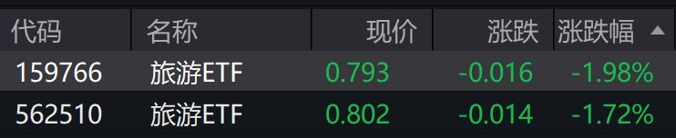 受盤面影響,跟蹤中證旅游主題指數(shù)的旅游ETF跌近2%。