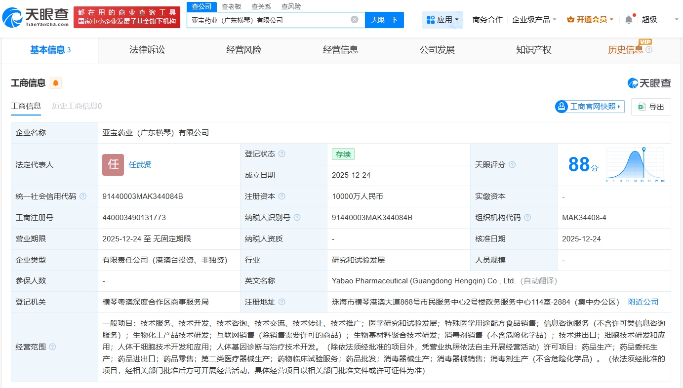每經(jīng)AI快訊,天眼查App顯示,近日,亞寶藥業(yè)(廣東橫琴)有限公司成立,法定代表人為任武賢,注冊(cè)資本1億元人民幣,經(jīng)營(yíng)范圍包括醫(yī)學(xué)研究和試驗(yàn)發(fā)展、生物化工產(chǎn)品技術(shù)研發(fā)、生物基材料聚合技術(shù)研發(fā)等。股東信息顯示,該公司由亞寶藥業(yè)(600351)、亞寶藥業(yè)(澳門)有限公司共同持股。