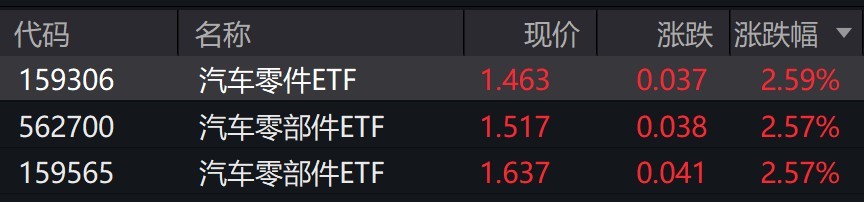 受盤面影響,跟蹤中證汽車零部件主題指數(shù)的ETF漲超2%。