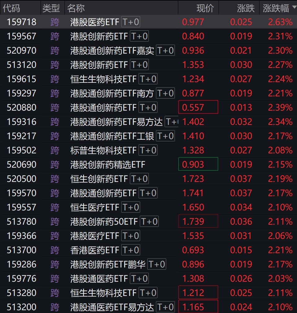 受盤面影響,多只港股醫(yī)藥相關(guān)ETF漲超2%。