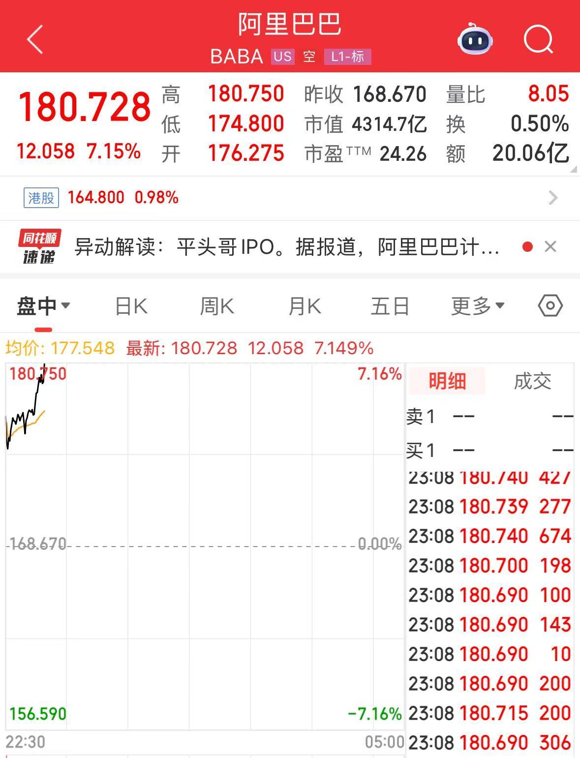 阿里巴巴股價(jià)突然直線拉升,市值大漲2000億元!發(fā)生了什么?