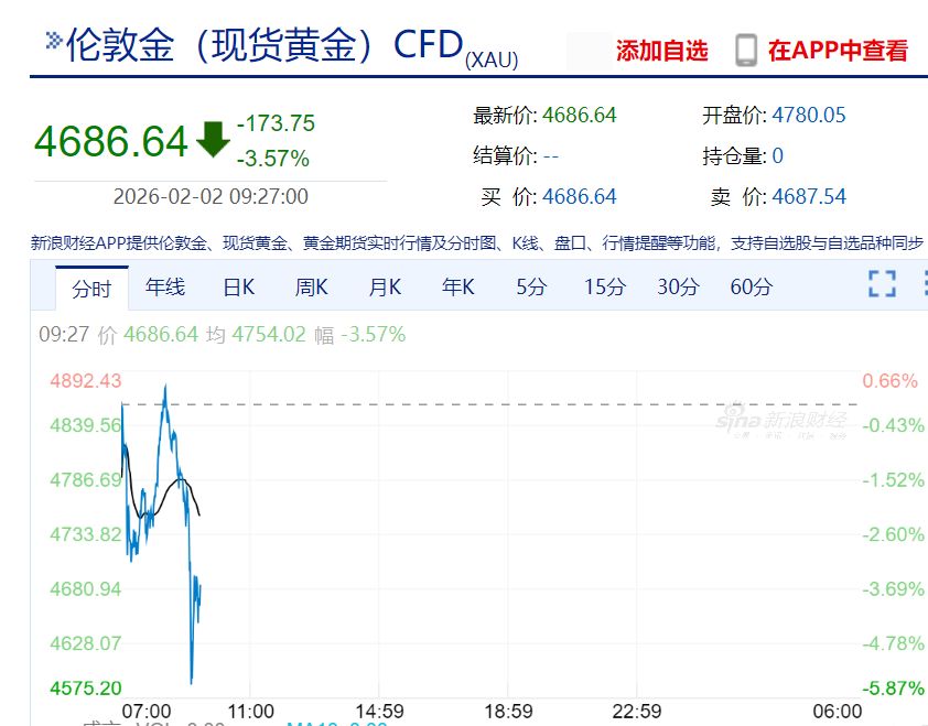 2月2日早盤,黃金、白銀集體低開,現(xiàn)貨白銀一度大跌近8%,隨后開始反彈,現(xiàn)貨黃金一度重返4800美元,現(xiàn)貨白銀日內(nèi)漲幅一度擴(kuò)大至近4%。