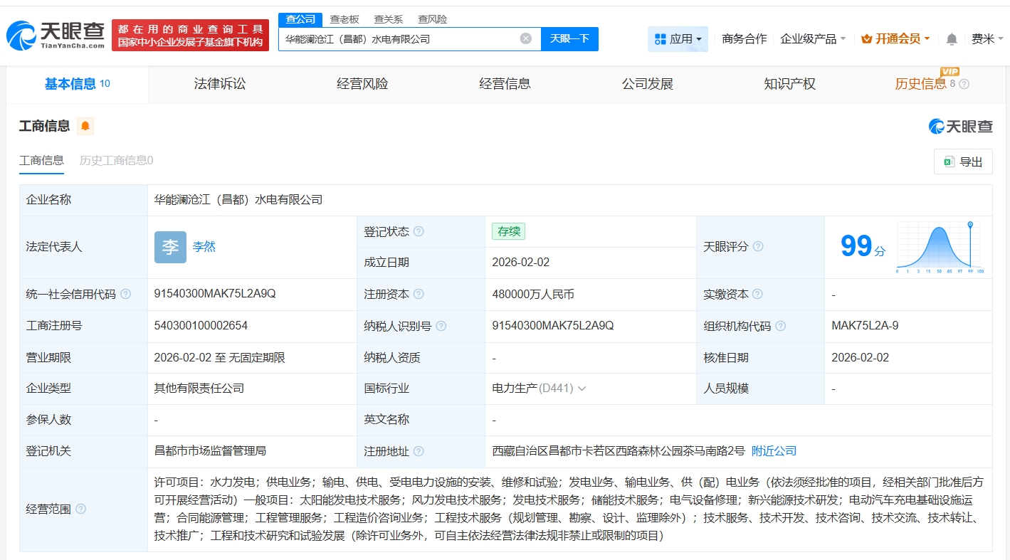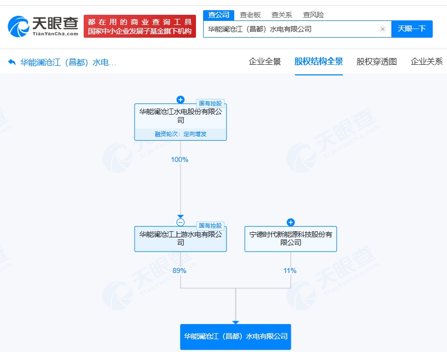 每經(jīng)AI快訊,天眼查App顯示,近日,華能瀾滄江(昌都)水電有限公司成立,法定代表人為李然,注冊(cè)資本48億元人民幣,經(jīng)營(yíng)范圍包括水力發(fā)電、供電業(yè)務(wù)、太陽(yáng)能發(fā)電技術(shù)服務(wù)等。股權(quán)全景穿透圖顯示,該公司由華能水電(600025)旗下華能瀾滄江上游水電有限公司、寧德時(shí)代(300750)共同持股。