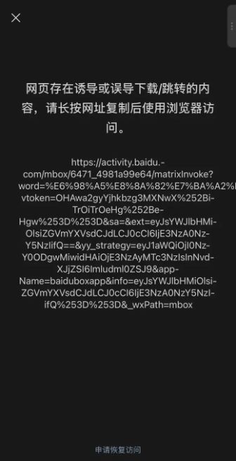 據(jù)荊楚網(wǎng),繼微信封殺騰訊元寶紅包鏈接之后,百度文心助手紅包分享鏈接也已被微信屏蔽,頁面顯示網(wǎng)頁存在誘導(dǎo)或誤導(dǎo)下載/跳轉(zhuǎn)的內(nèi)容,需要跳轉(zhuǎn)第三方瀏覽器訪問。