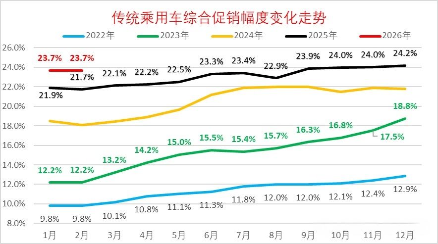 乘聯(lián)分會秘書長崔東樹表示,今年1月份燃油車型新車降價的較多,突破原有車型指導(dǎo)價下限的較多,降價車型均價較低,新車降價力度達(dá)到較高水平。數(shù)據(jù)顯示,1月國內(nèi)降價的燃油車有10款,較上年同期增加5款;1月,燃油車的促銷水平為23.7%,同比增長1.8個百分點。