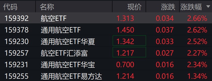 受盤面影響,多只通用航空相關(guān)ETF漲超2%。