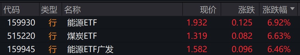受盤面影響,能源、煤炭相關(guān)ETF漲超6%。