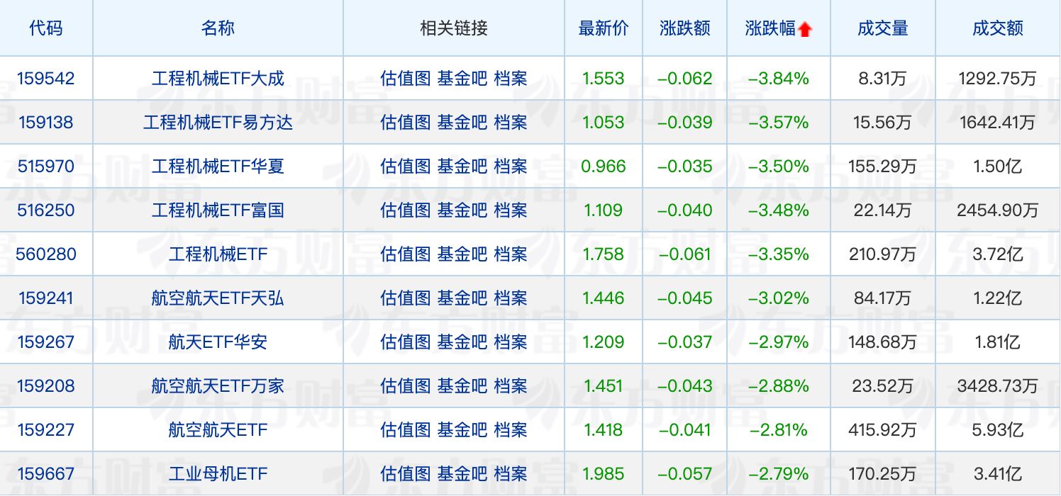 下跌方面,工程機械ETF全線回調(diào),最大跌幅為3.84%。